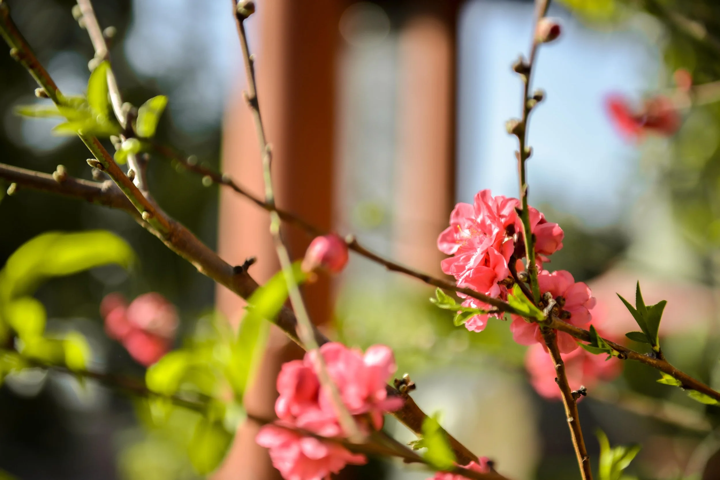 Đào hồng nở thắm trên cây